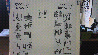 This picture is showing our chart for good and poor choices. We discussed each card and talked about why it was good or poor. I really liked the visuals on these cards and the class (I think) really understands what is expected of them.